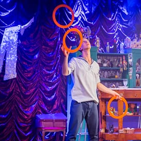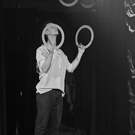 Aaron tritt mit technisch anspruchsvollen und gleichzeitig künstlerisch choreografierten Jonglage-Darbietungen auf – mit Bällen, Ringen und Keulen. Seine Auftritte sind dynamisch, ausdrucksstark und passen perfekt zu Galas, Festivals, Varietés oder Firmenfeiern. Auch längere Showformate gemeinsam mit anderen Künstler:innen sind möglich.