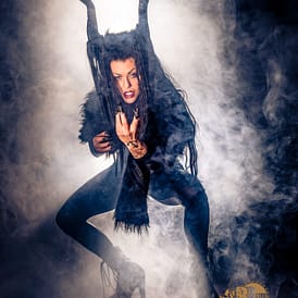 Elementen wie Feuer, Akrobatik/ Artistik und nach Bedarf auch einer Schlange setzt Sie ihre faszinierenden Kostüme,