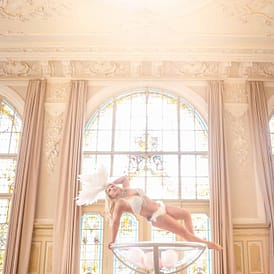 Die wunderschönen, opulenten Pferde auf alten Karussells haben mich schon immer fasziniert, ein solches zu besitzen ist wohl Traum vieler Mädchen. Ich habe mir diesen Traum erfüllt und mein Karussellpferd Prestige für meine Burlesqueshow anfertigen lassen. Geheimnisvoll, bezaubernd, stark, sanft…. mit Zuckerbrot und Peitsche. Stilsicher in glitzerndem Frack, antikem Zylinder, ganz viel Strass und schmeichelnden Federn biete ich Ihnen diese außergewöhnliche Show dar und setze mich gekonnt erotisch in Szene.