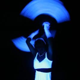 Tanz mit Feuer-Schalen, Fächern, Poi, Stäben und Seilen