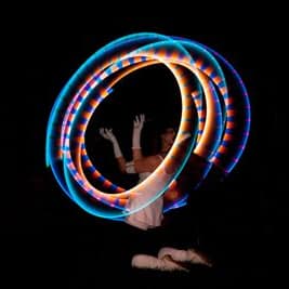 Erleben Sie mit mir faszinierende Licht- und Feuershows. Ich schaffe in der Dunkelheit mit brennenden oder leuchtenden Elementen