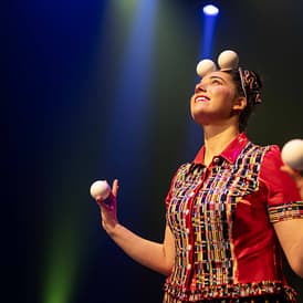 Mit ihrem besonderen Charme und ihrer unterhaltsamen Jonglage zaubert sie den Zuschauern von Jung bis Alt ein Lächeln ins Gesicht.