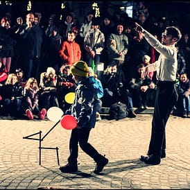 Absurde Ideen und Banales aus dem Publikum verwandelt er zu grandiosen Erlebnissen für alle Beteiligten und das ganz ohne Worte.
