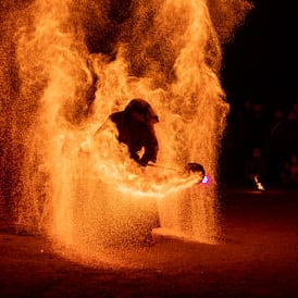 - Feuershows mit Pyroeffekten, Kohlefunkenflug & Feuerherz