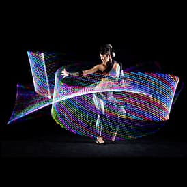 Vivian fasziniert mit LED- und Feuershows, Hula-Hoop-Kunst, Aerial Hoop, Magic Wand und Sphere Dance – jede ihrer Acts ist choreografisch durchdacht und technisch präzise inszeniert. Ihre LED-Acts sind vollständig programmiert und ermöglichen das Einfügen von Logos, Mustern oder Grafiken – perfekt für Firmenfeiern und Produktionen mit individuellem Thema.
